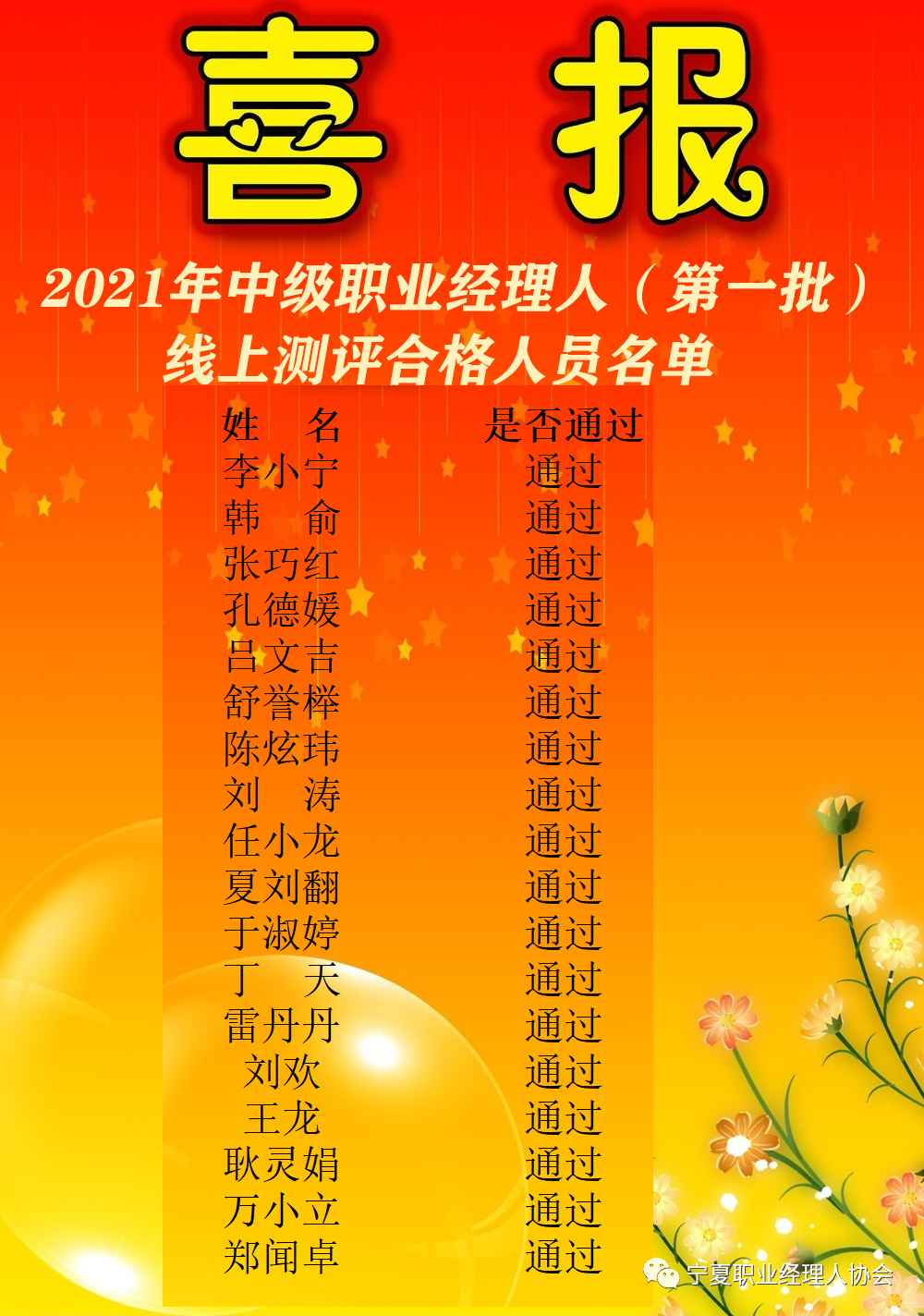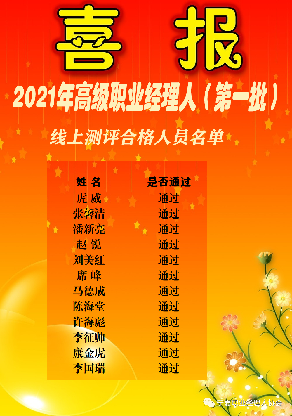 根据《职业经理人资质培训与评价认证工作组织管理办法》,2021年度职业经理人经个人申报、专业研修、网络测评等环节,恭贺29名(第一批)线上测评人员获得通过,名单如下: